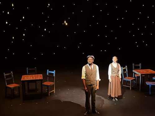 For ECC’s 2025 production of Our Town, I created a sound design rooted in the belief that the extraordinary is always hiding inside the ordinary. Working within Wilder’s beautifully minimalist world, I built a sonic landscape that felt both invisible and essential, morning roosters tucked into soft New England breezes, distant trains marking the gentle rhythm of time, and the rise of church hymns guiding the community from love to loss.